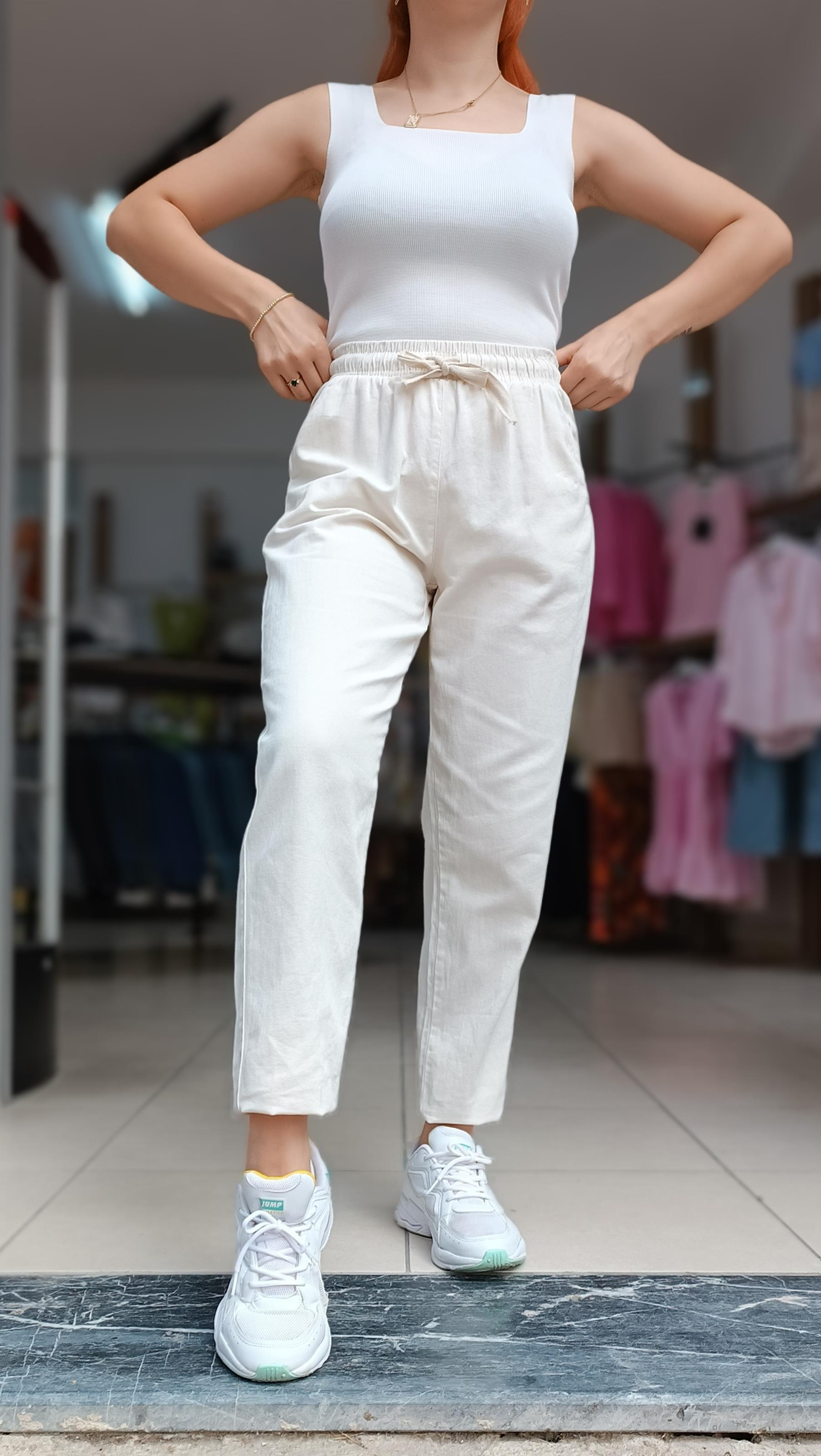 • Beli lastikli, iki yanı cepli Keten Pantolon🌻✨